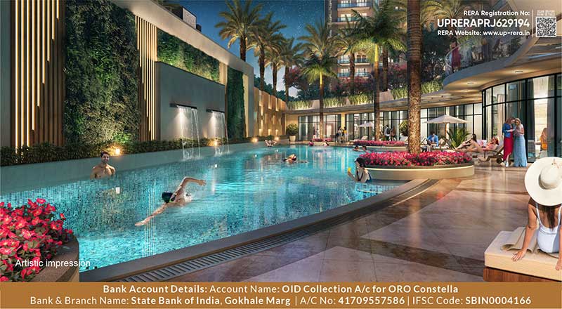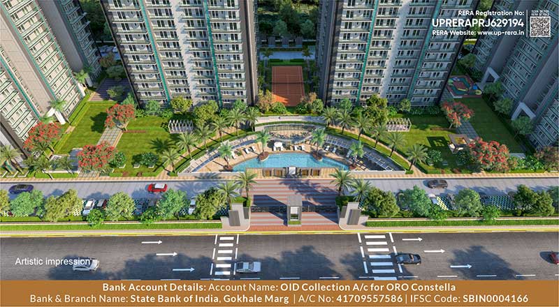 Oro Constella offers a total of four towers, followed by lush green surroundings and a luxurious swimming pool area. This lavish property comes with world-class infrastructure and facilities like a seating area, gym, meditation space, garden, etc., which provide the residents with a peaceful and soothing lifestyle.